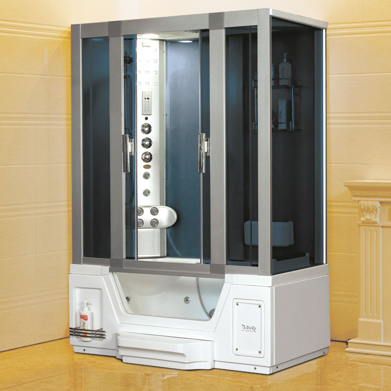 WITH:Pop-up drainer with overflow valve,TX-36A pillow,apron good shelf,silent double slider,2 door handle,double layer goods shelf,top shower,lifter,shower,shower hose,faucet,6 atomization jets,backrest,sole massage,computer,ozone,top lamp,speaker,fan,4 bead background lamp,steam export